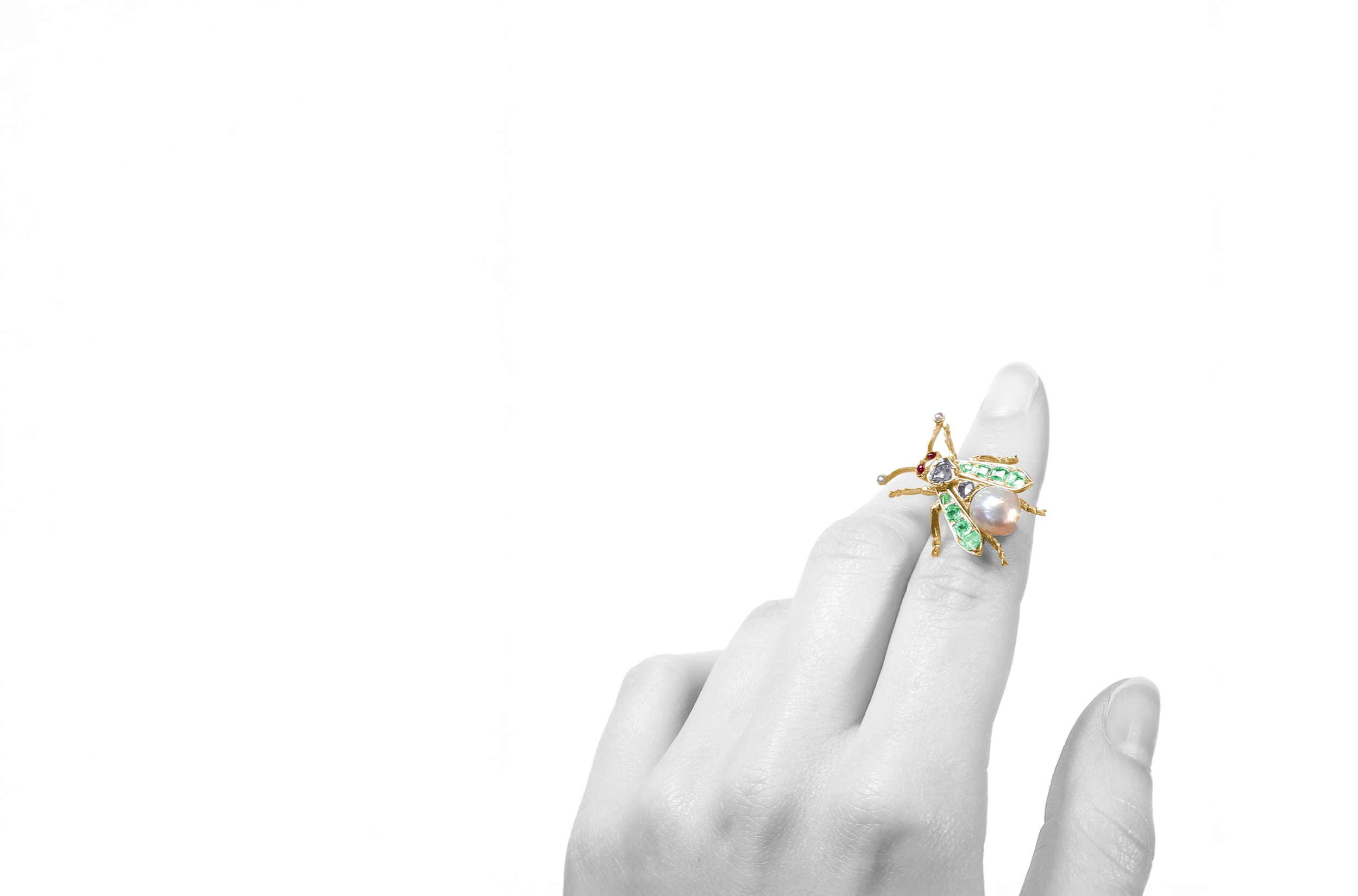 A fly of gold in splendour dressed.